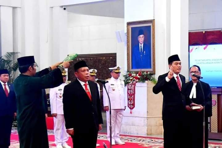 Selanjutnya, Presiden Jokowi mengambil sumpah jabatan Kepala Bakamla dan Kepala Barantin yang dilantik pada hari ini.